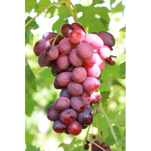 Strugurii roșii strălucitori, cu boabe de 8-10 g, au un gust armonios și o pulpa crocantă.